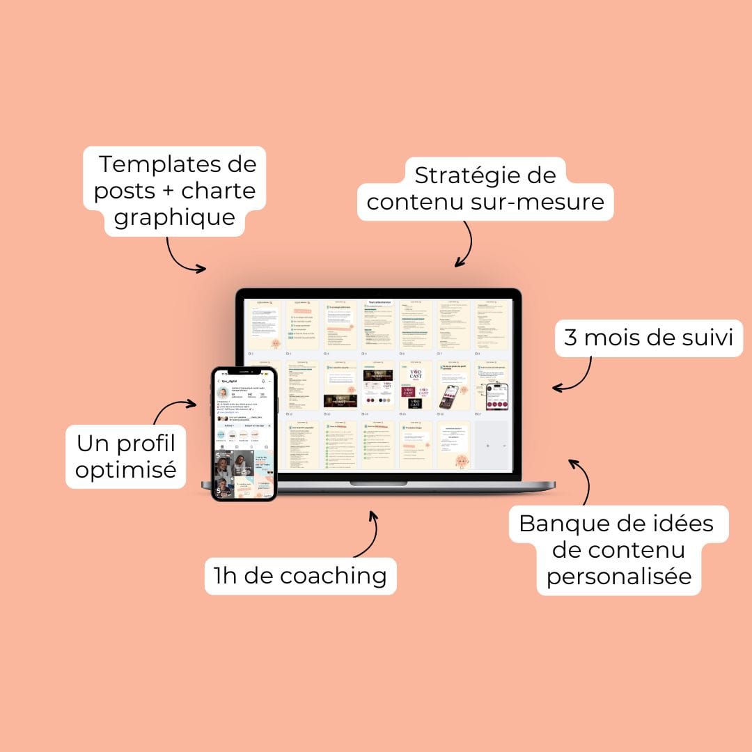 Une stratégie adapté à ton activité pour développer ta page Insta, des templates personnalisés.